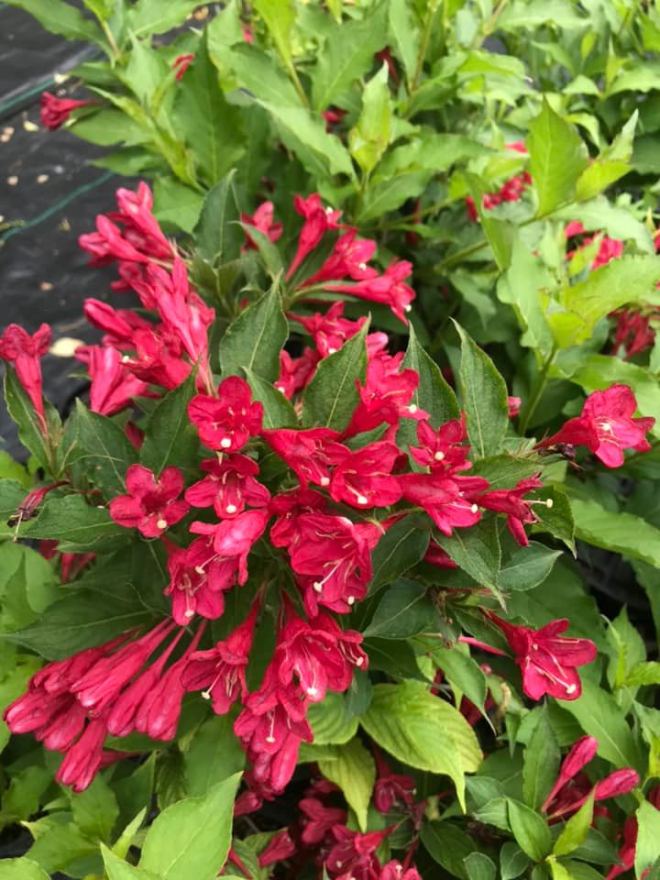 Two seasons of bloom every year! Weigela ‘Pink Poppet’ is a dwarf shrub covered in light pink blooms ideal for the sunny border, foundation, or garden accent. Very striking in mass.